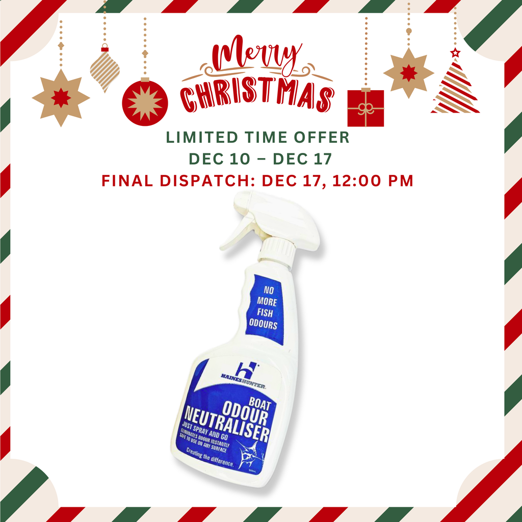 Haines Hunter Boat Odour Neutraliser just spray and within 5 minutes, any odour will be gone. Eliminates odour instantly safe to use on any surface.